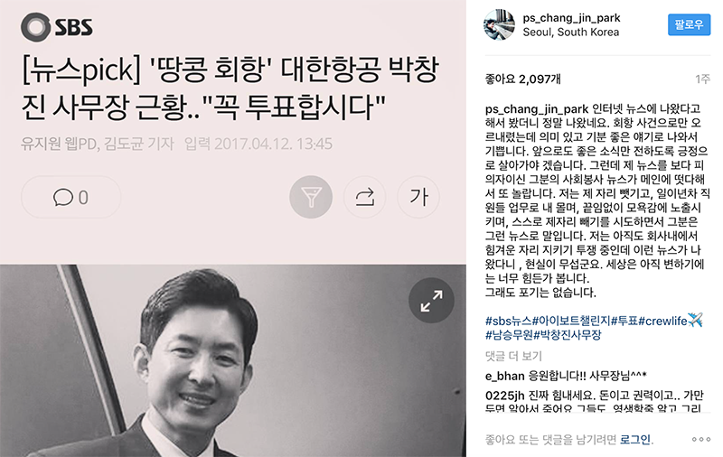 땅공 조현아 근황 보도 후 박창진 사무장이 올린 글 > 자유게시판
