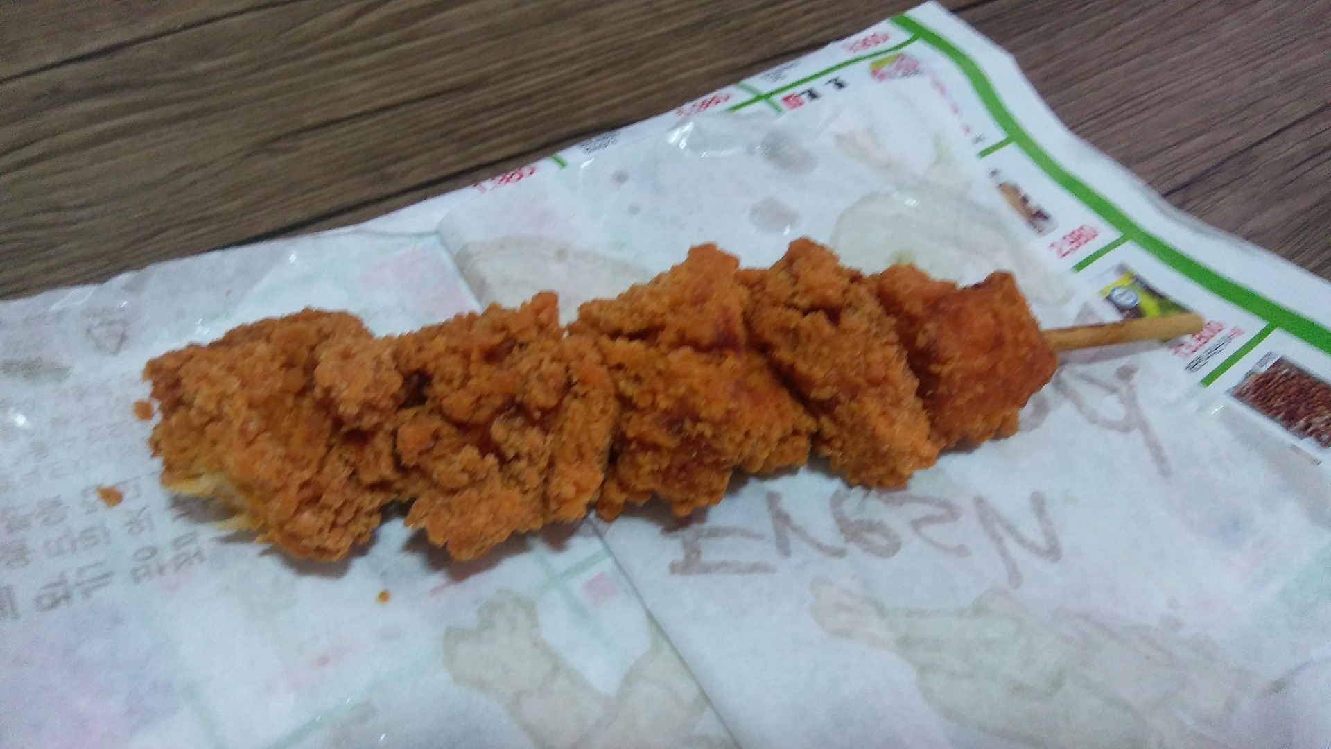 밑에 치킨꼬치는 지에스 편의점 순살매콤치킨꼬치인데 순살이 보들보들하니 맛나네용 ㅋ