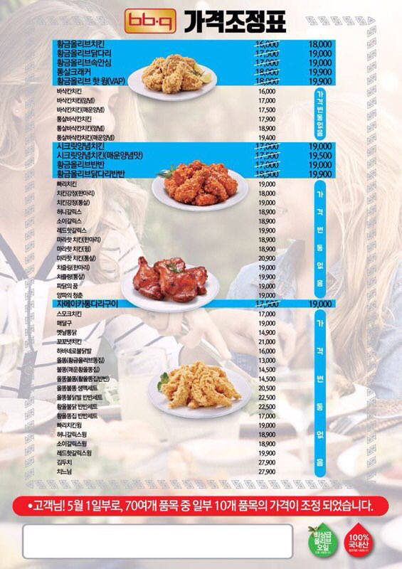 치킨은 비비큐가 먼저 올리고 다른 치킨들이 따라서 올라가니 이거 뭐.... 비비큐만 안 먹는다고 될 일이 아니더군요. | ||