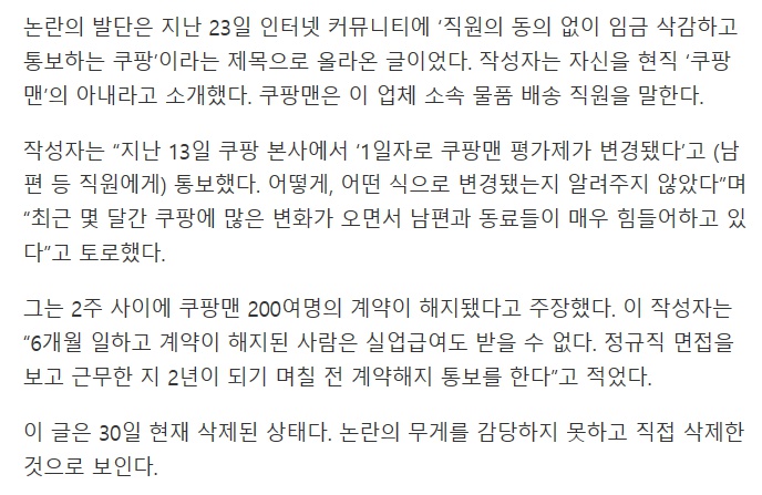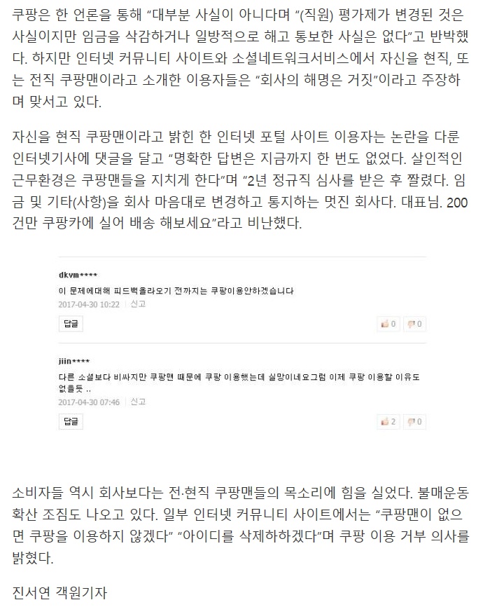 쿠팡맨 대우 안좋다고 예전부터 말은 있었는데 공개적으로 크게 터지고 있나보네요. |