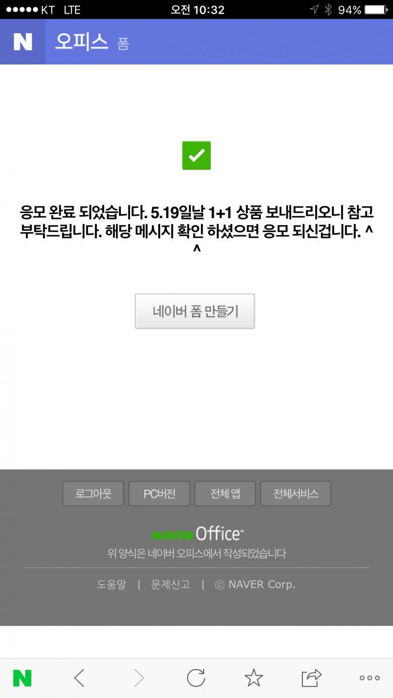 처음에 네이버 폼 작성후 문구가 바껴있군요.
