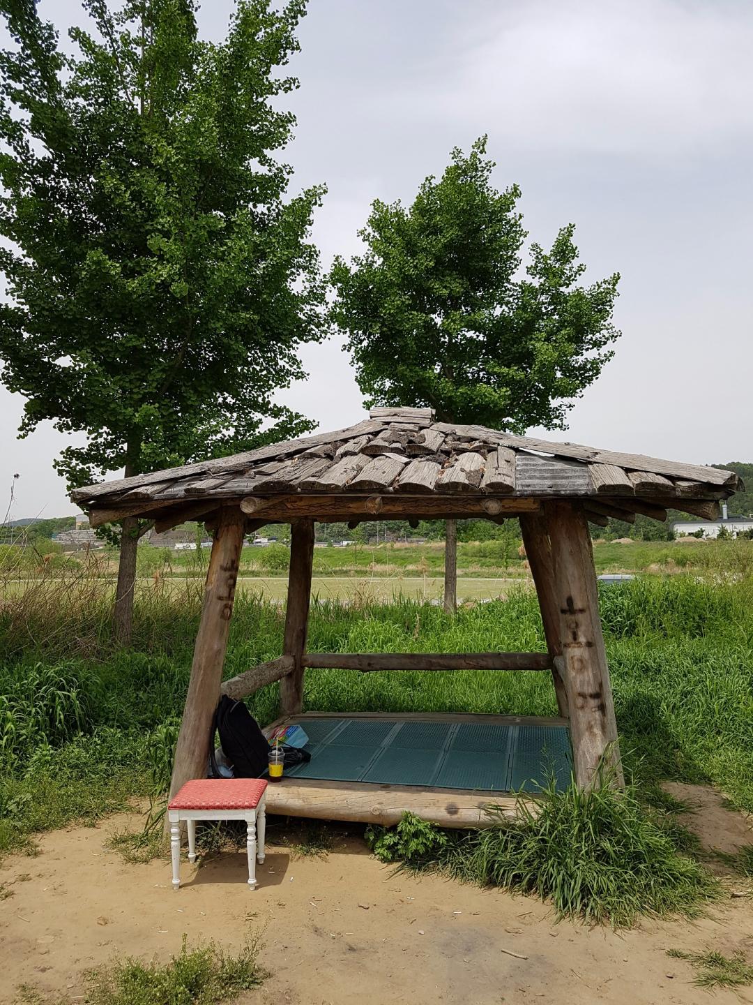 오전에 일하고 오후엔 교대하여 쉬기로 했는데, 근처에 원두막이 하나 있네요