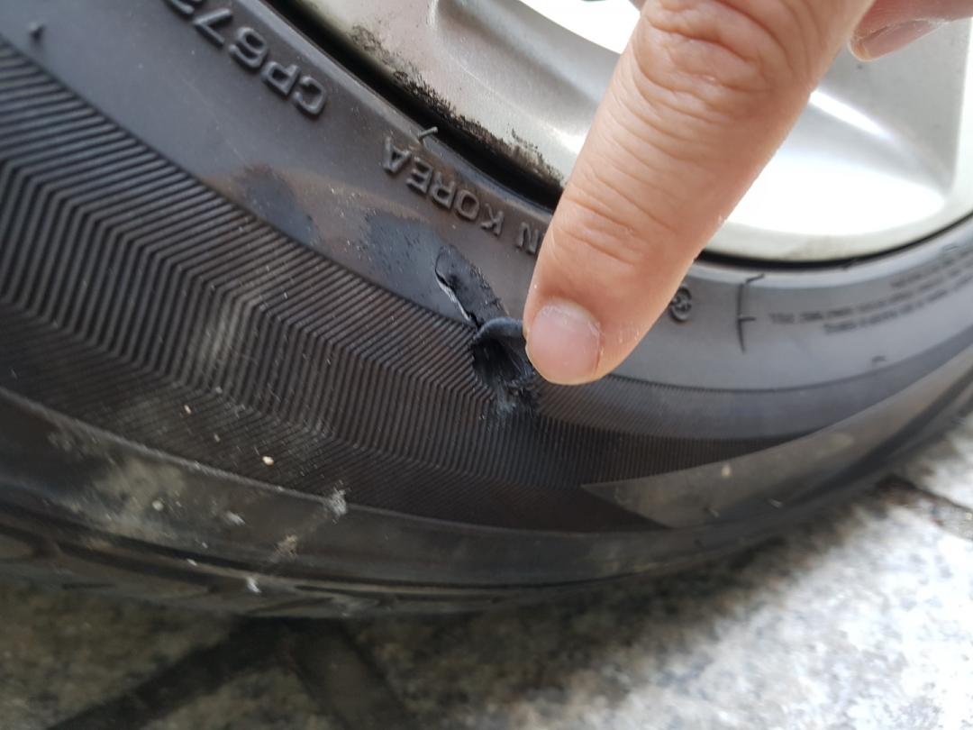 올리신 사진 보다 훨씬 얕게 긁히듯이 상처가 있었는데 주행중에 터졌어요.. 괜찮을 줄 알고 앞타이어에 있던걸 뒤로 보내고 타고 있었는데 큰일 날 뻔했죠.. 앞으로 옆면에 상처 생기면 바로 교체하려구요.