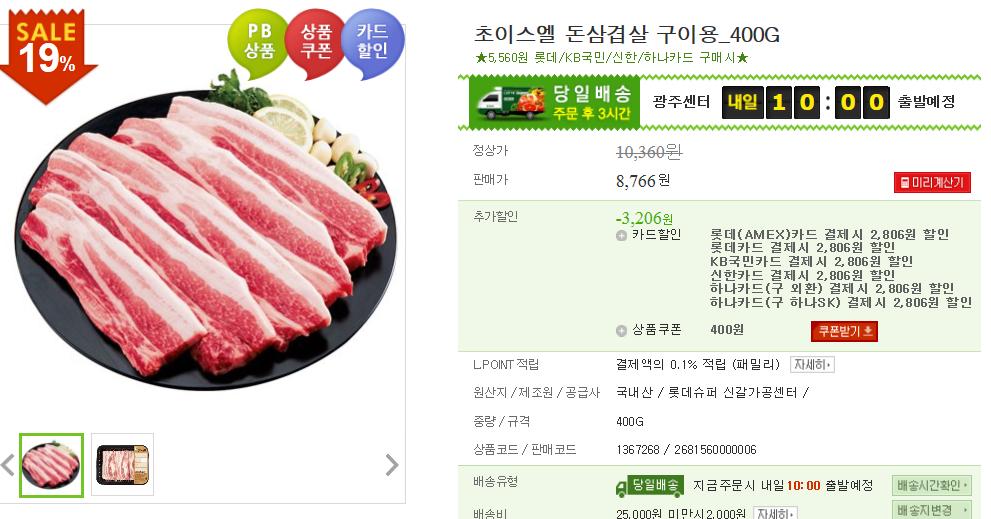 집에서 삼겹살 구워먹을때는 역시 대형마트에서 세일할때 사서 먹는게 최고인거 같아요.ㅎ