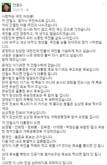 안희정,이재명, 박원순은 안철수와 함께 하겠다는 의사가 있었는지 궁금하네요. | ||
