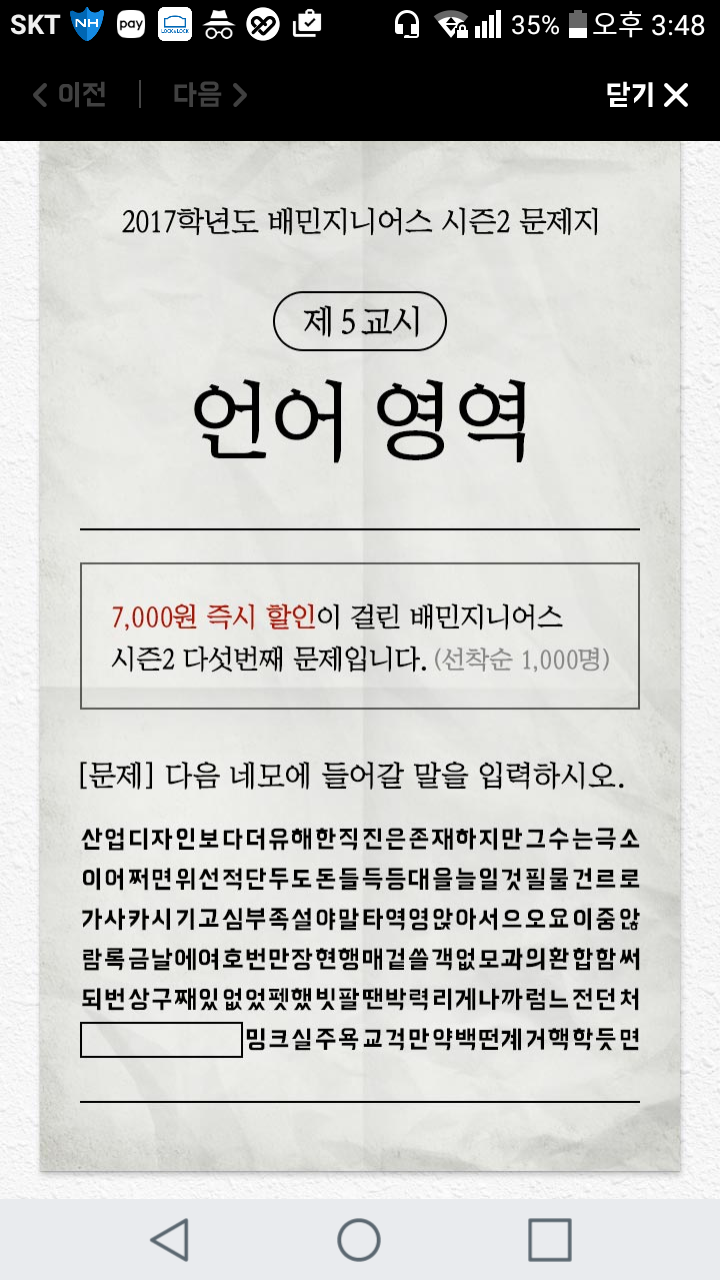 답이 할인쿠폰 이라구요? 글자수도 안맞는거같은데 |
