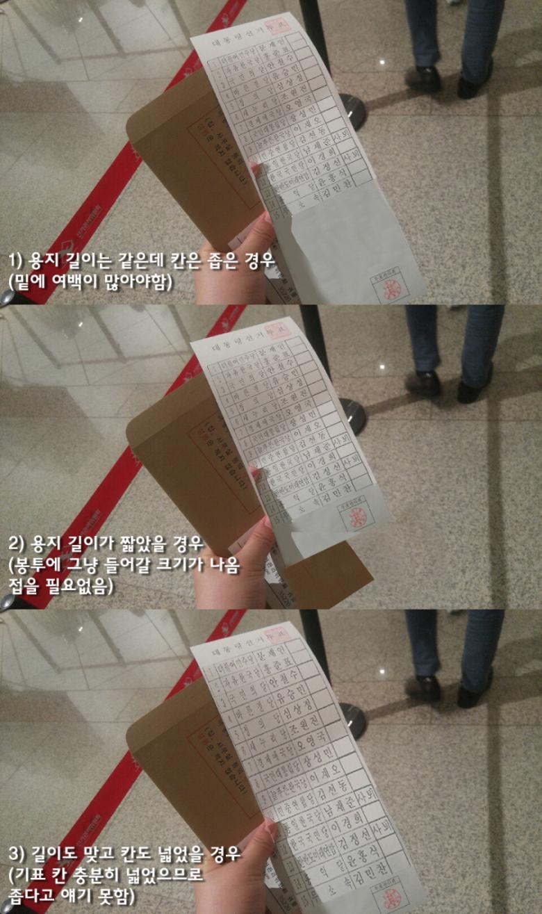 후보들 사이에 간격이 없으려면 제가 올린 합성처럼 한칸이 넓던가...아니면 용지의 하단부가 1/3이상 공란으로 남아야합니다. |