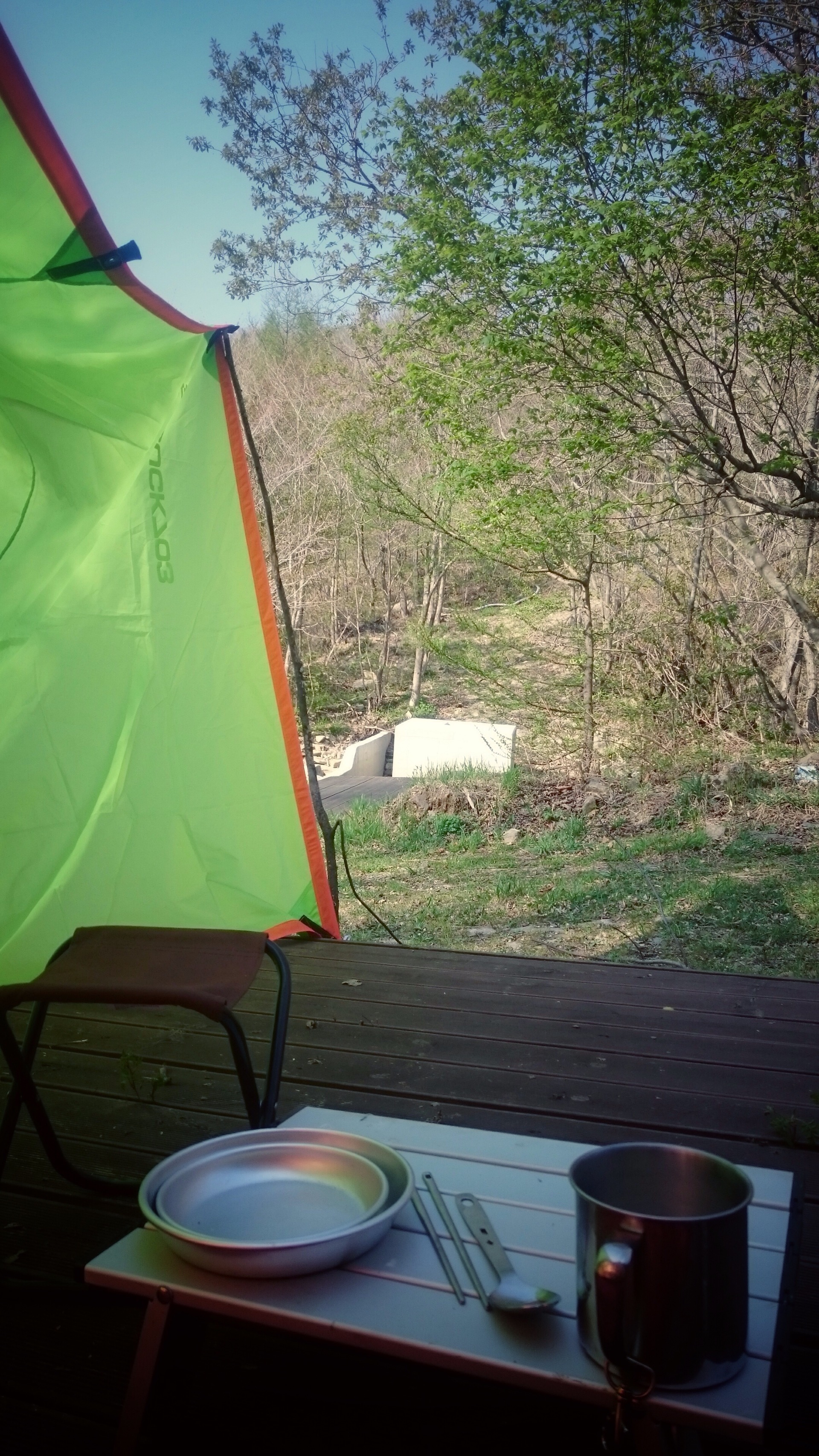 가림막 타프를 나무작대기로 고정...참 없어보이네요 ㅋ