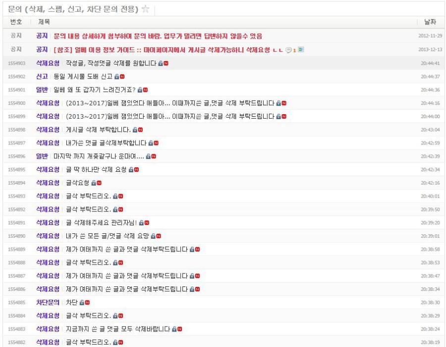 사이트 폐쇠도 고려해봐야 할듯... 그럼 삭제할 필요없는데... ㅋㅋ |