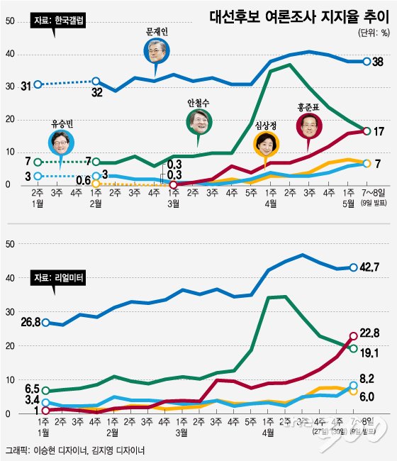 깜깜이 기간 여론조사 추이 그래프랍니다. > 자유게시판