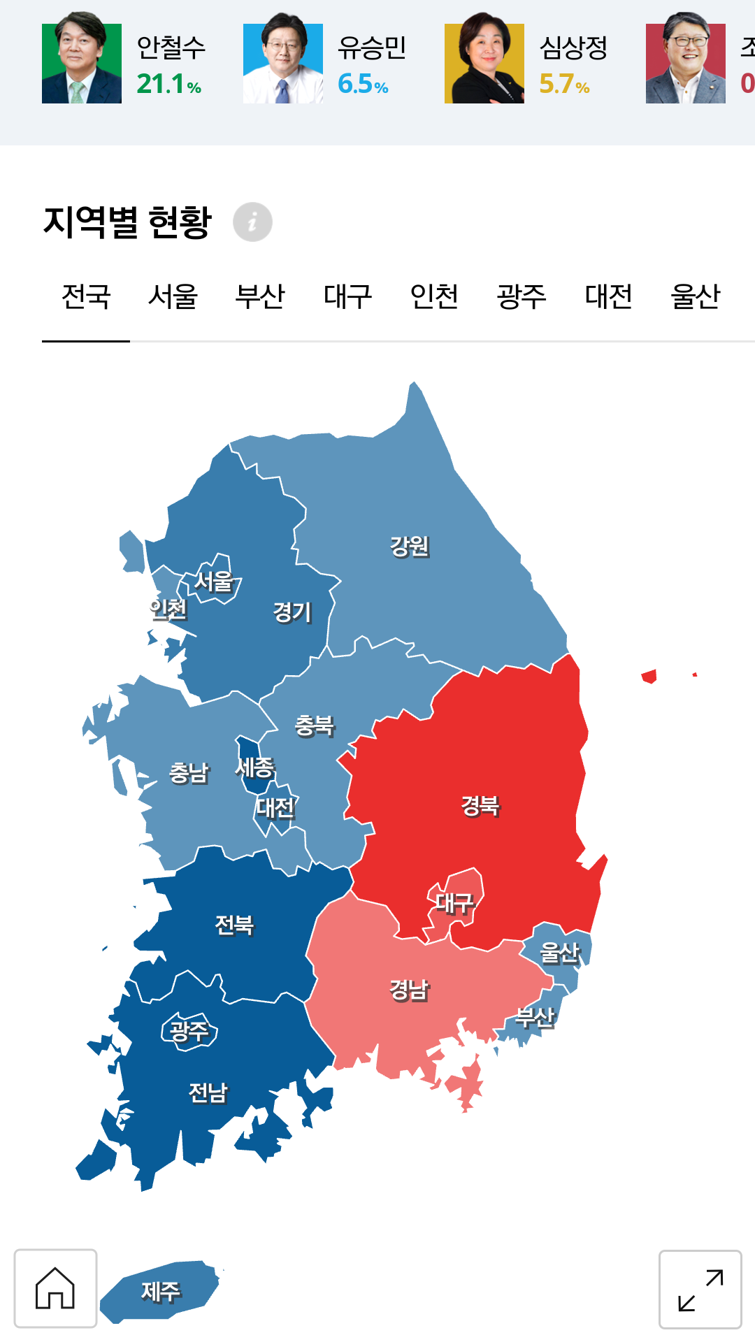 그래도 경남은 세부로 들어가 보면 양산, 김해, 거제는 파란색이더라구요 ㅎㅎ |