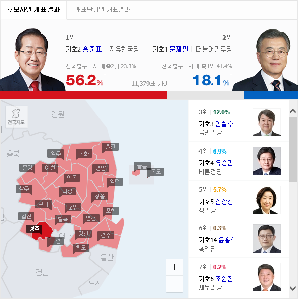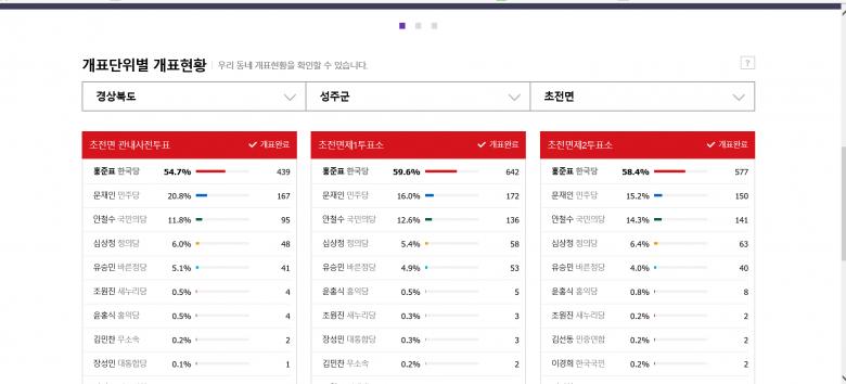 아침에 눈뜨자마자 성주 득표율 찾아보고