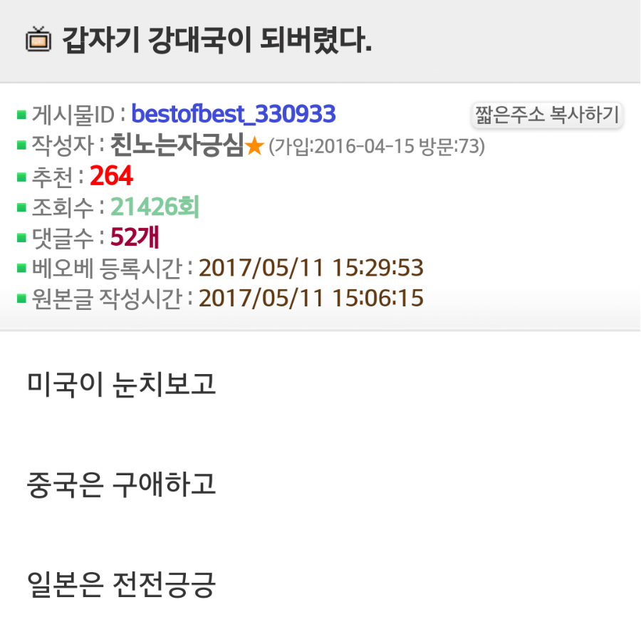 끝으로 오유 에서 이슈가 되고 있는 글 내용 하나를 첨부하며 마무리 할까 합니다.