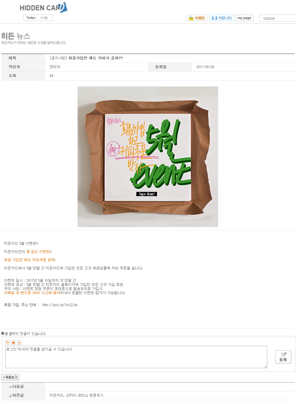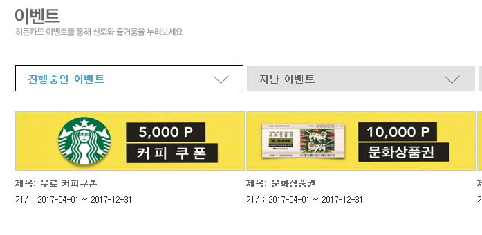 히든카드 5월 회원 가입 커피쿠폰(스타벅스 아메) 100% (05/01~05/31)