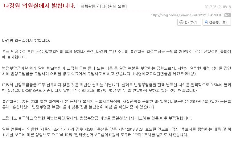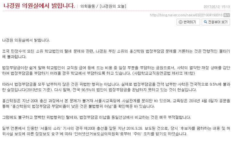 나경원 블로그 해명글, 노답이네요ㅡㅡ > 자유게시판