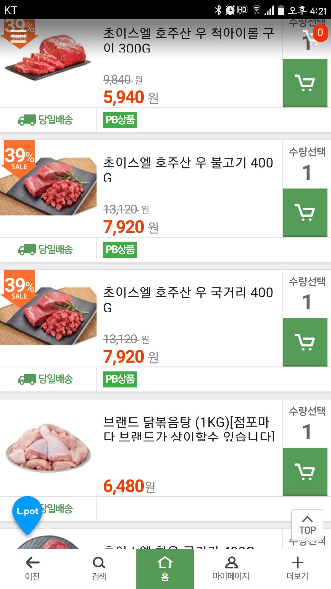 전 롯데슈퍼에서 국거리와 불고기용을 ;-)