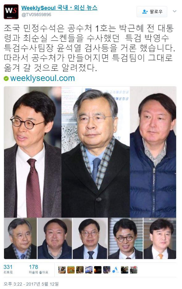 저도 약간 찌라시라는 생각이 드는게 박영수 특검 법무법인 강남 대표변호사, 이규철특검보도 대륙아주 파트너 변호사...일년에 기본 두자리로 억단위 땡기시는 분들인데 공수처로 갈까요...그야말로 명예만 남는 자리일텐데... |