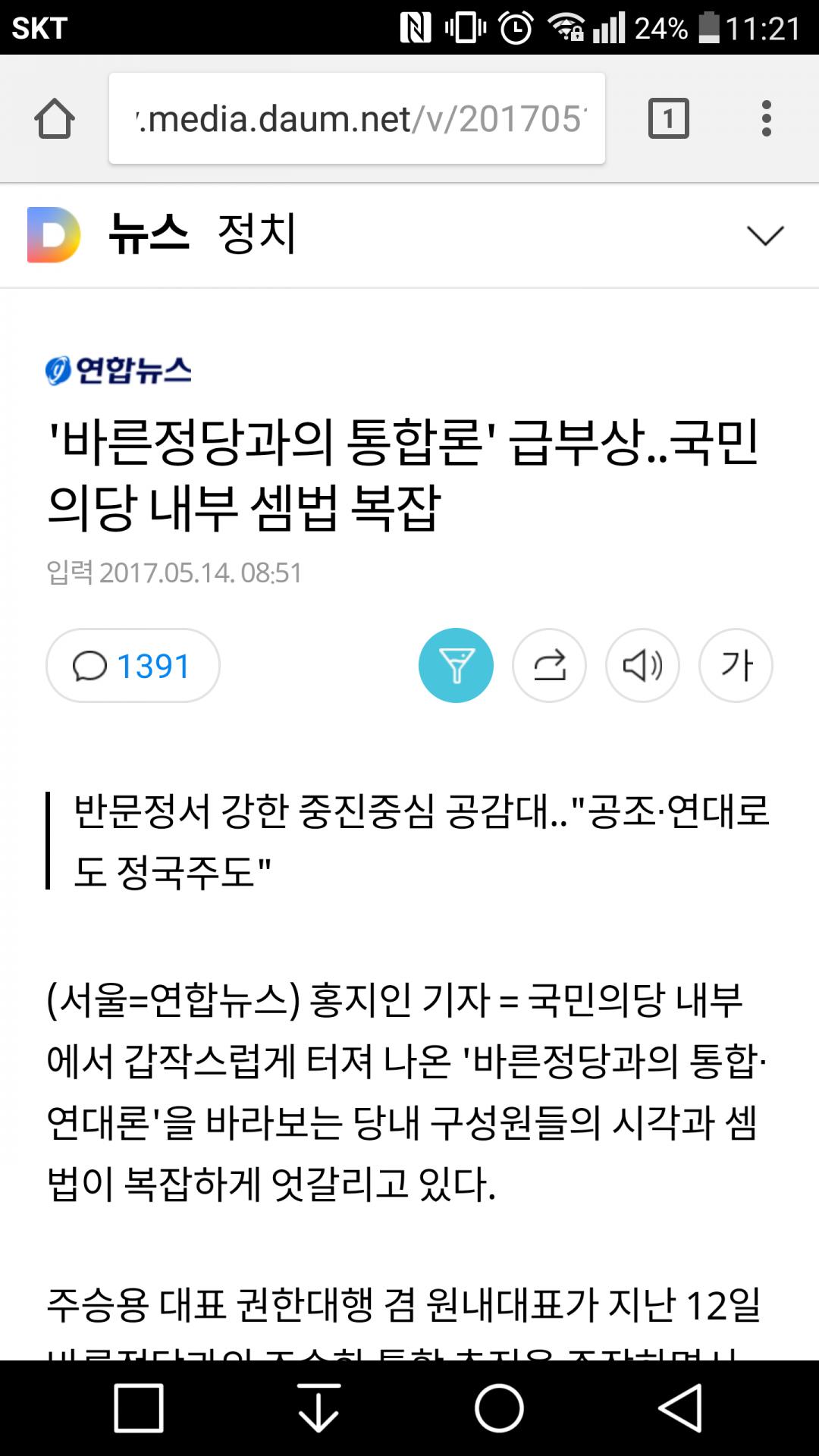더민주로 두 손들고 들어가기는 싫고 바른정당과합쳐서 남은 국회 임기동안 수로 깽판을 쳐보겠다는 생각 아닐까요? |