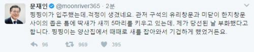 두번째 사진 진짜 아무리봐도 귀여우신?! 문재인 대통령님 사진으로는 최강인거 같아요. | ||