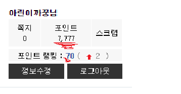 딜바다 연예인포럼에서 놀다보니 어느덧 7777점이나 모았네요