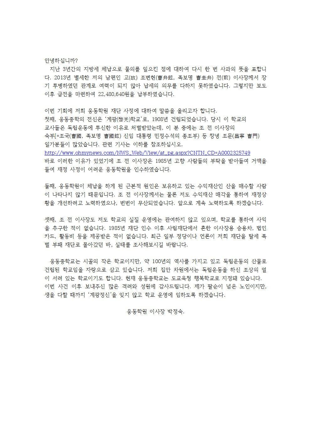 웅동학원 세금완납 답변서 - 이사장 박정숙 > 자유게시판