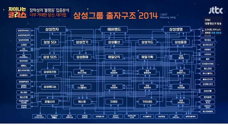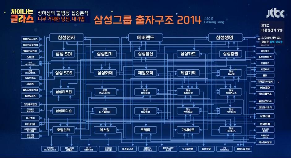 수입이 늘은 기업중에 대표적인 삼성그룹의 출자구조입니다.