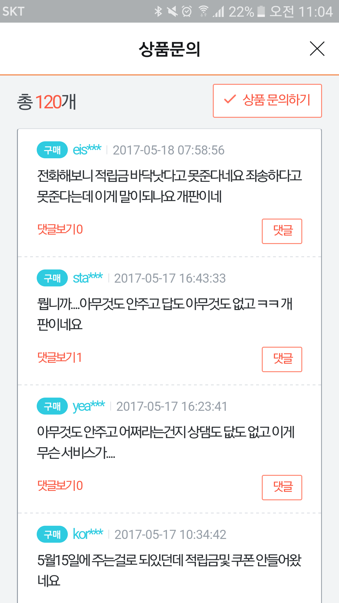 잘 들어와서 이런 문제가 있는지도 몰랐네요.