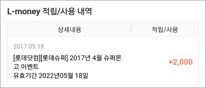 롯슈 슈퍼몬 L머니 2천 적립!! 확인들해보세요. > 자유게시판