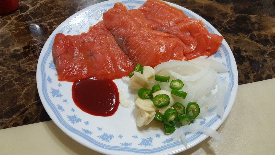 롯데마트에서 세일해서 산 훈제연어로 불금 보내네요..
