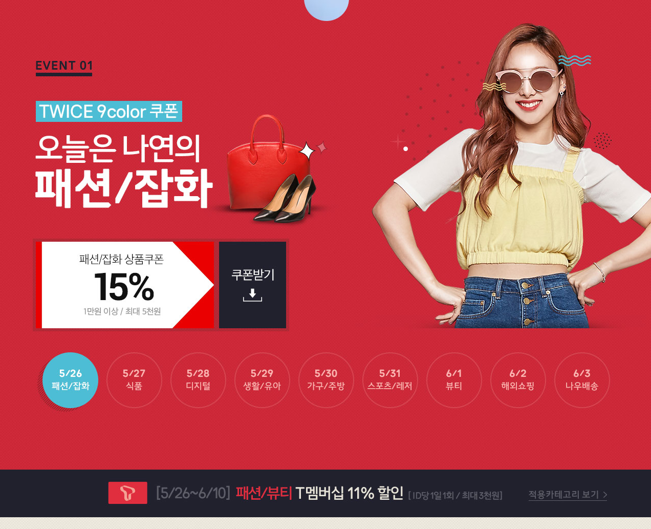 오늘쿠폰은 패션/잡화 15% 입니다.