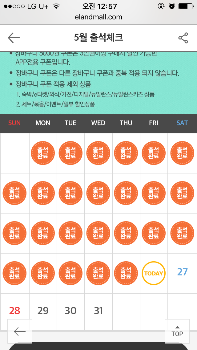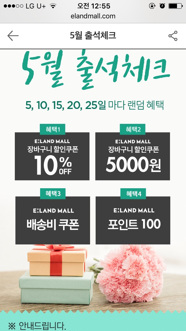 진짜 몇달간 오기로한 출석체크로 기억될 것 같아요. 이랜드몰 출석체크 바이바이..