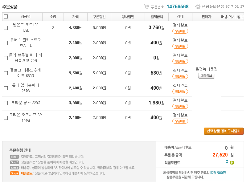 장바구니 쿠폰이라서 등급 쿠폰하고 같이 사용하면 좋습니다.