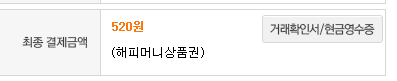 520원 결제 지만 해피머니로 마무리
