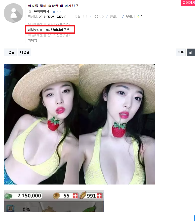 몇달전부터 가끔 나타나던 게임광고인데 신고가 없었는지 돌아왔습니다
