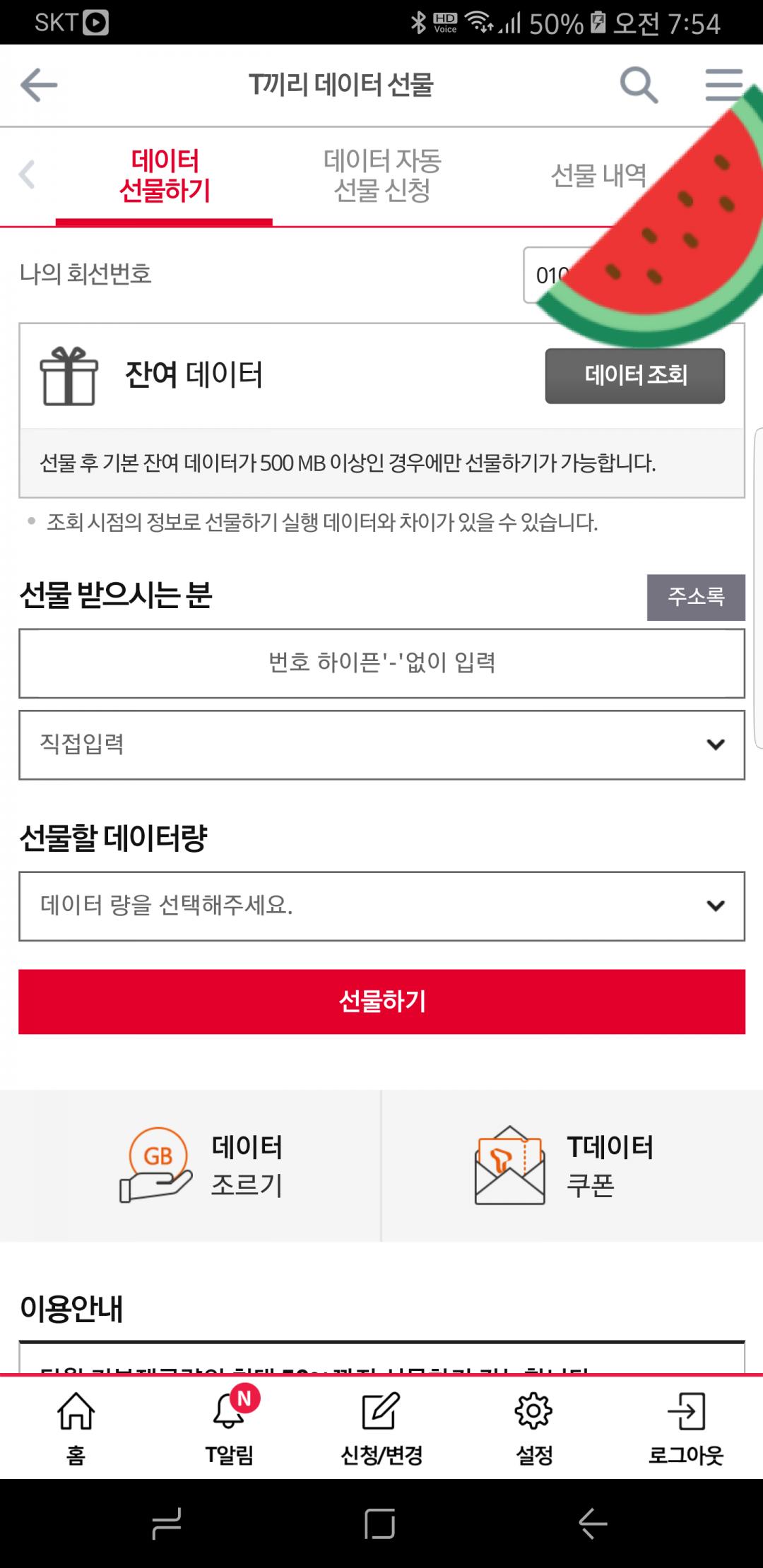 skt는 자동으로 보내는 거 있어요 |