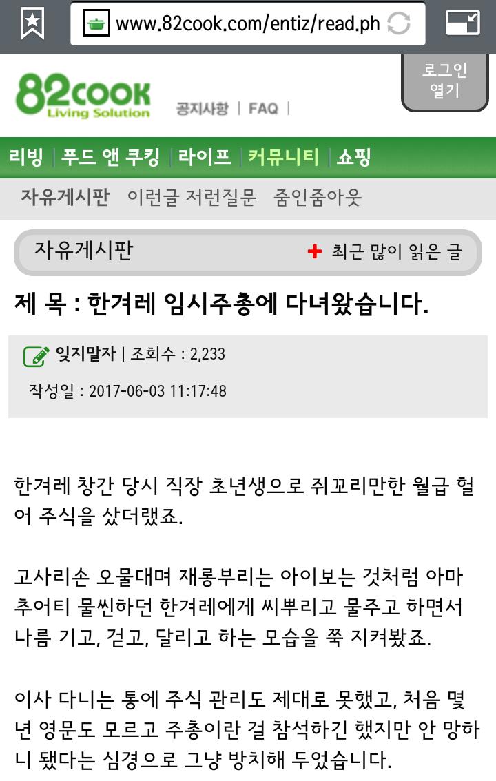 최근 한경오 사태의 자세한 내막은 잘 모르겠는데