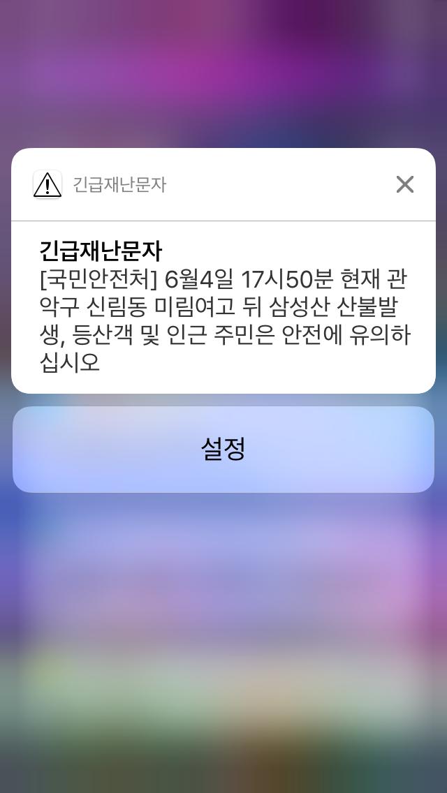 긴급 재난문자 삼성산 산불 > 자유게시판