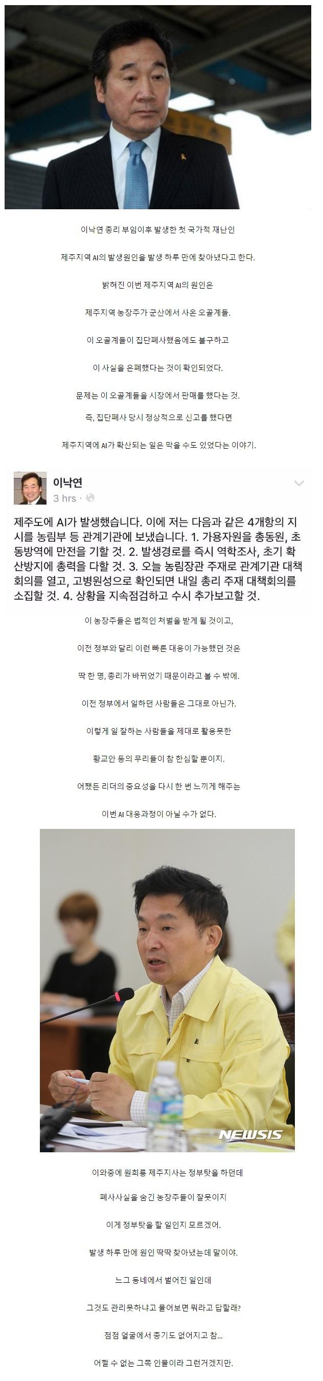 (펌)제주 AI 발생원인 찾았다.이낙연 총리 이후 바뀐 정부의 모습