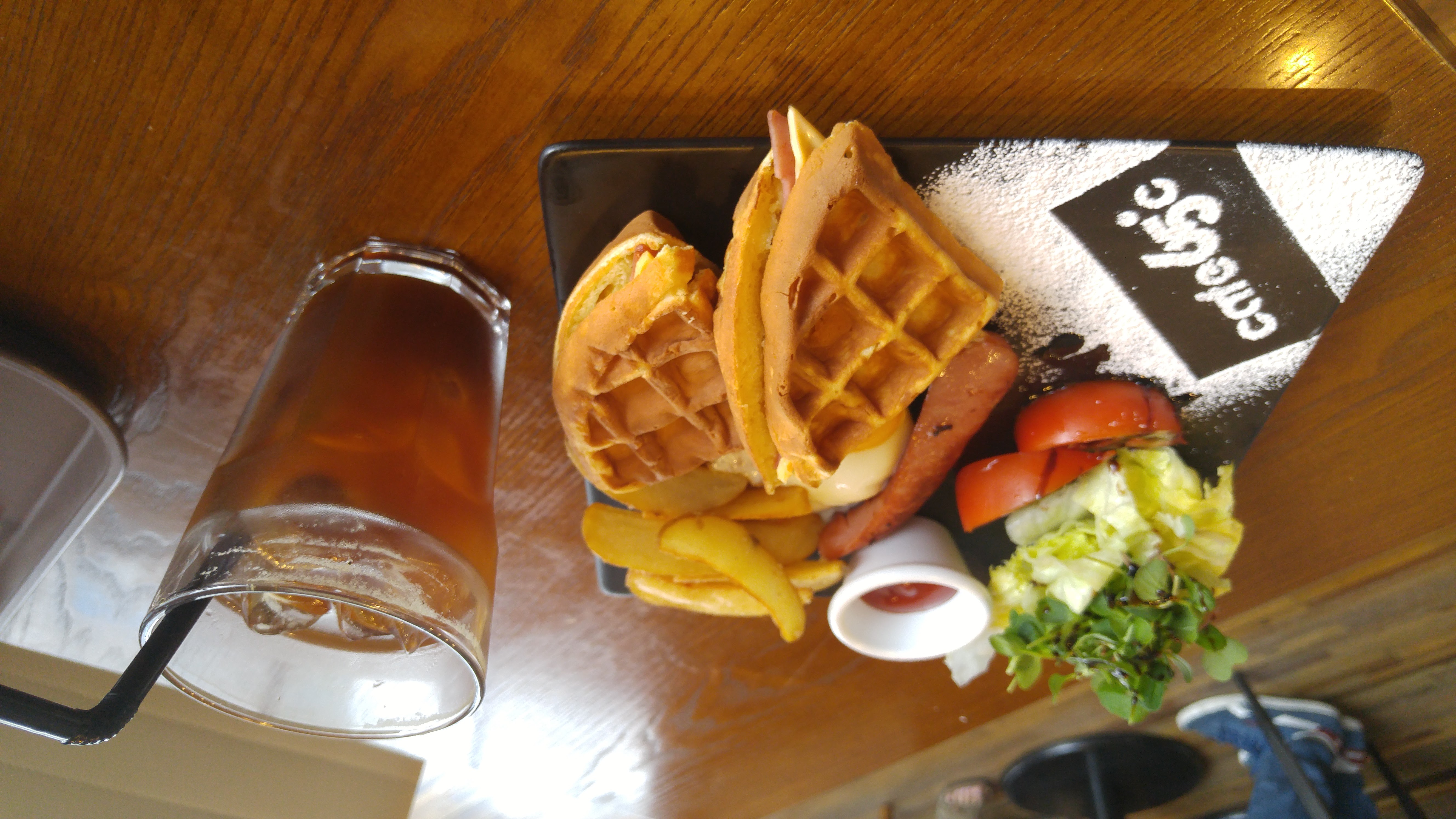 쏘세지 와플 감튐  거기다 야채까지  츠룹ㅋ