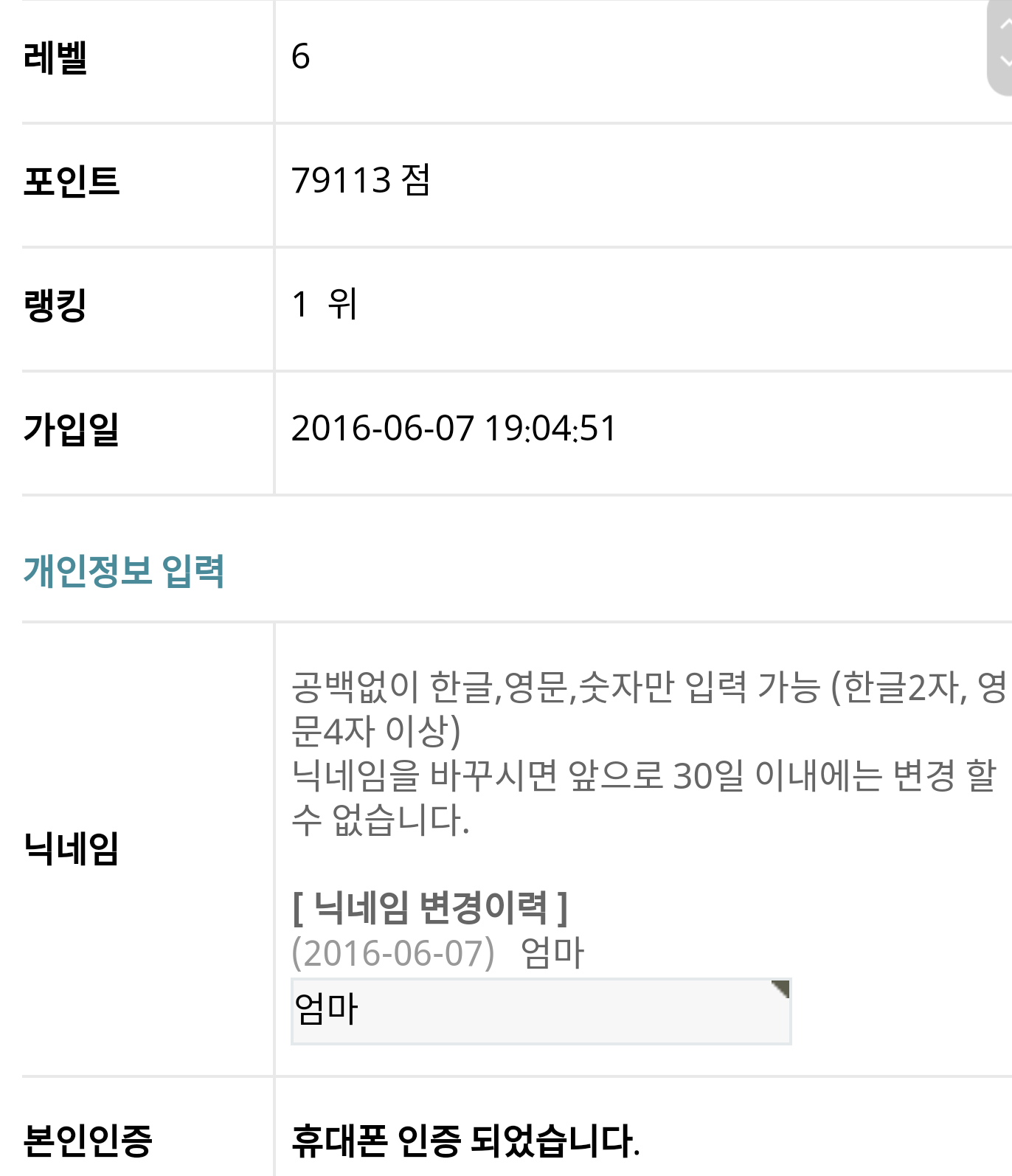 참고로 다른 사람 가입일은 아이디 클릭 후 자기소개 눌러보시면 확인 가능합니다(자기보다 고렙은 확인 못해요)