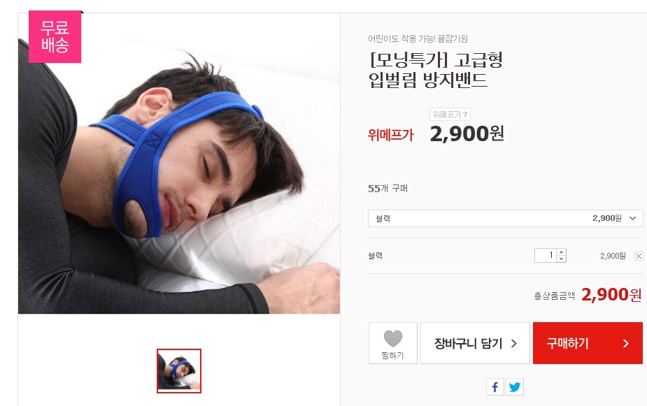 저거 효과는 모르겠네요.  입안벌리고 자면 좋긴 하죠. 갑갑해서 자다가 벗을 확률이 높아보여요.