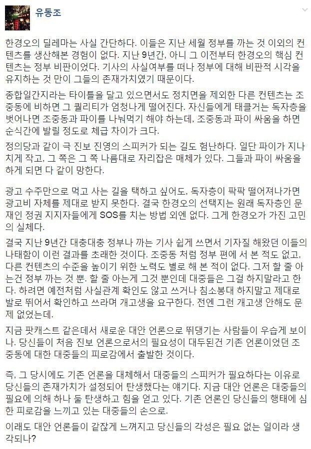 그러니 한경오가 조중동 떨어진 사람이 가는 데라고 욕쳐드는거죠