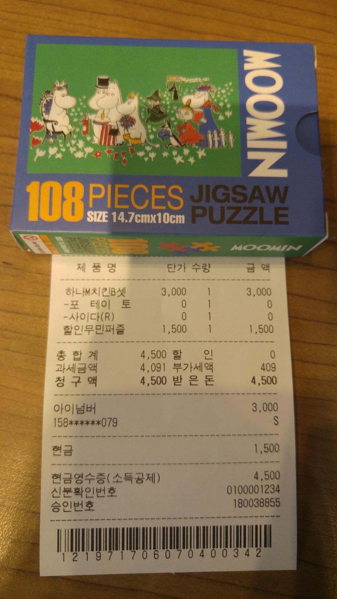 롯데리아에 왔는데 무민 직소퍼즐 있어서 샀어요