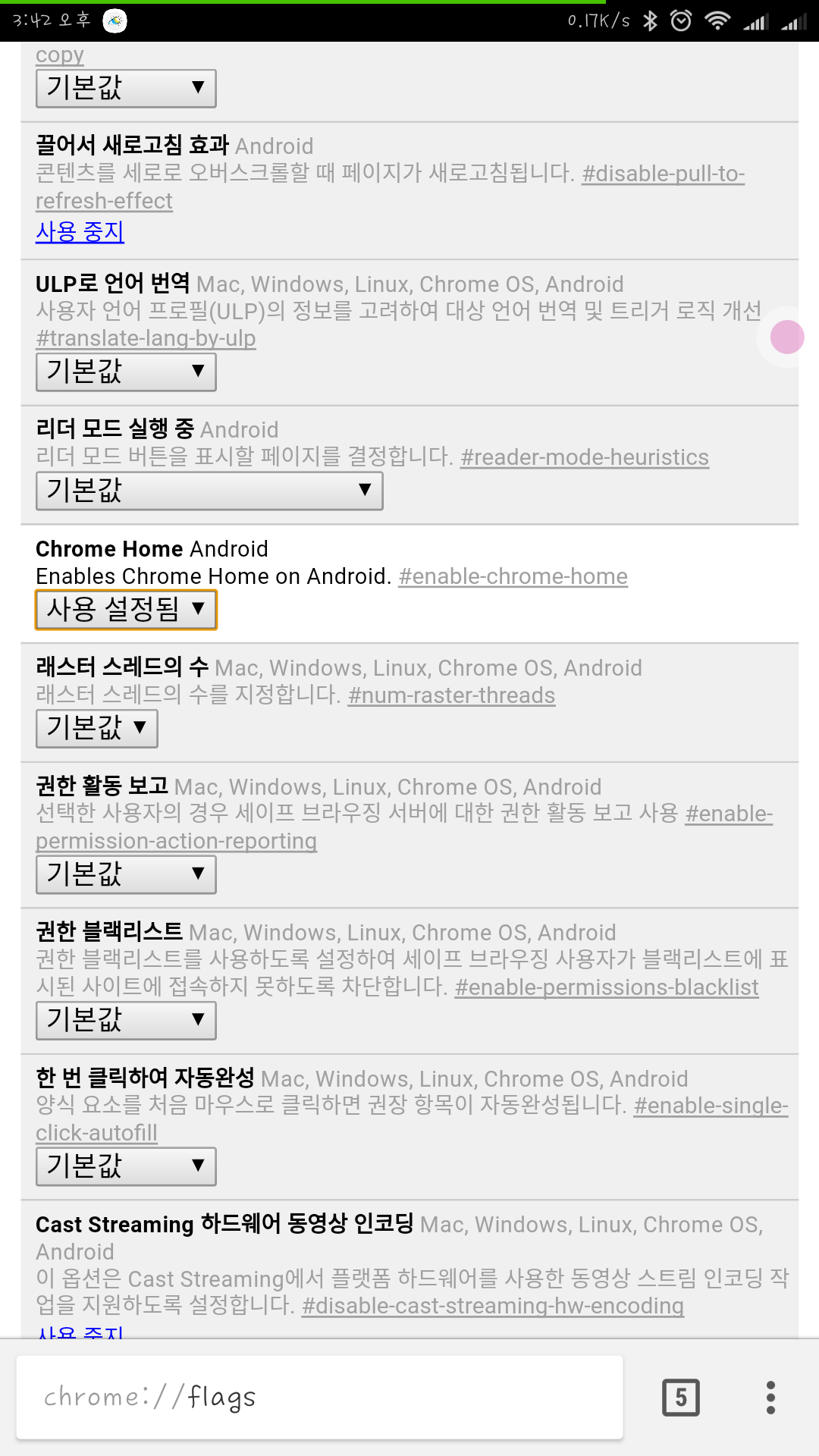 안드로이드 크롬 최신버전에서