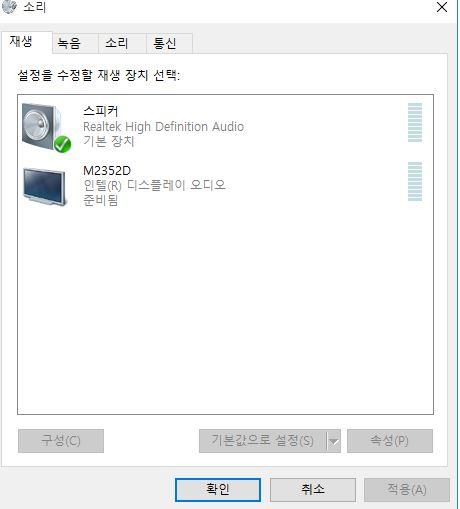 지금 현재 제 pc에는 리얼텍 오디오랑 인텔 기본 내장 오디오 2개가 인식이 되고 있구요.