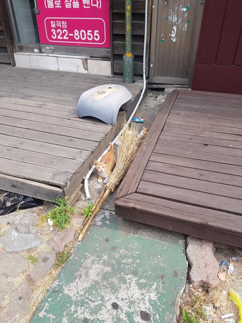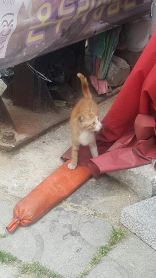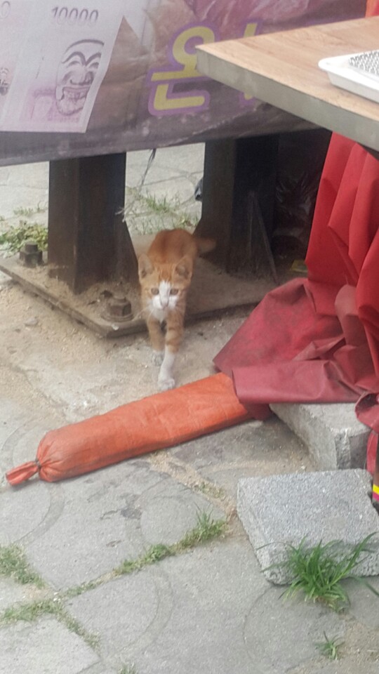 이녀석 혼자 다니네요...어미고양이랑 나머지 는 어쩌고...귀욤귀욤한데 못먹어서 그런지 뼈뿐이네요ㅜ