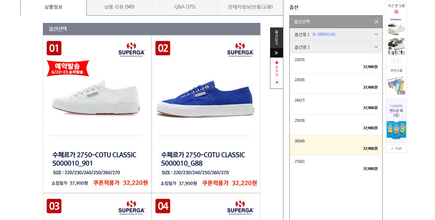 저도 슈페르가 있는데 바닥부분이 상당히 얇습니다 그리고 신발 사이즈 잘 보고사셔야 됩니다 화이트 세일할때 보통 이정도 합니다 혹시라도 오프라인으로 볼수 있다면 확인하고 사시길 권해드립니다