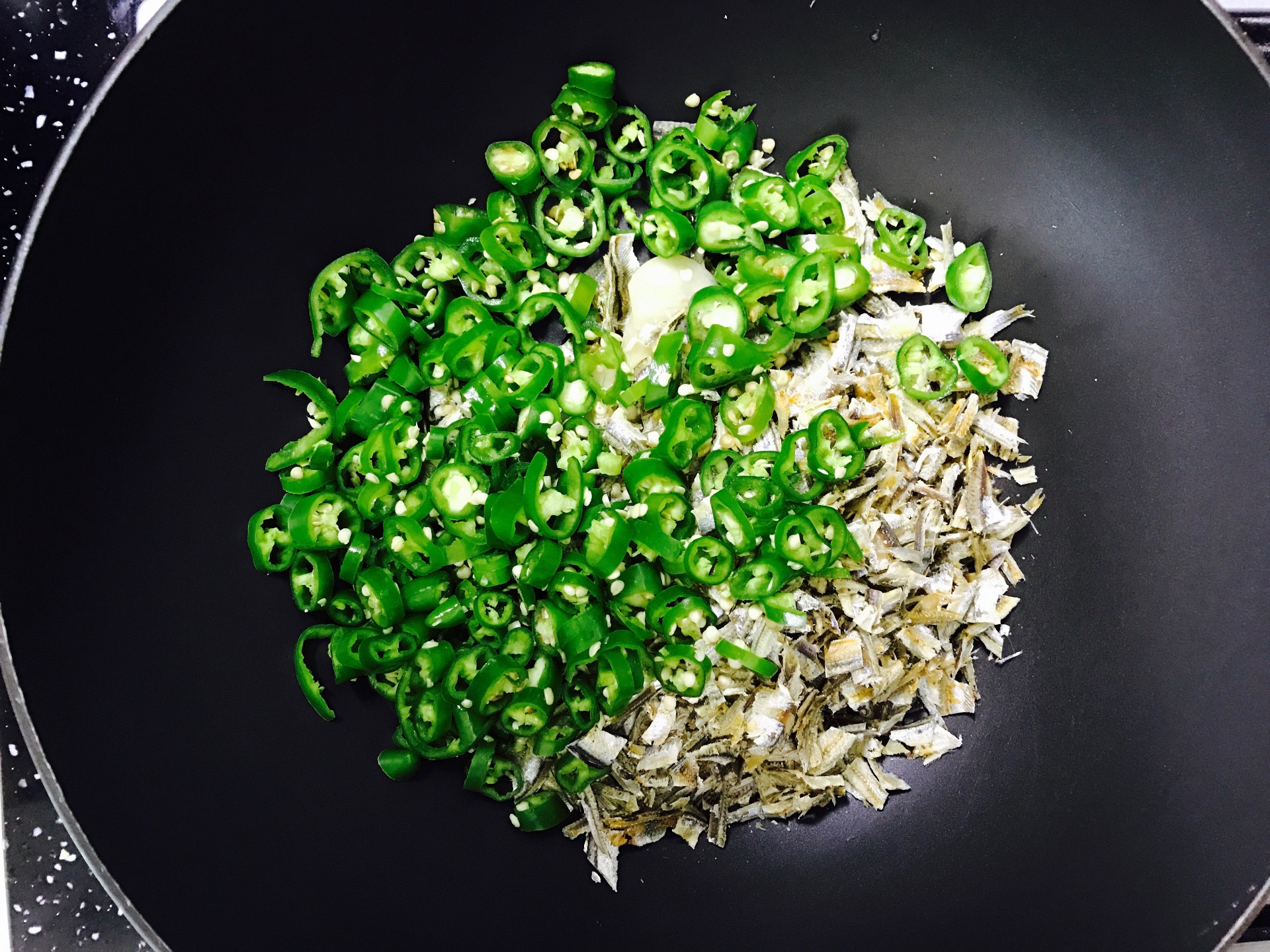 팬에 마늘기름을 두르고 (없으시면 오일+편썬 마늘) 멸치+고추 넣어서 중불에 비린내 날라가도록 볶아주세요.