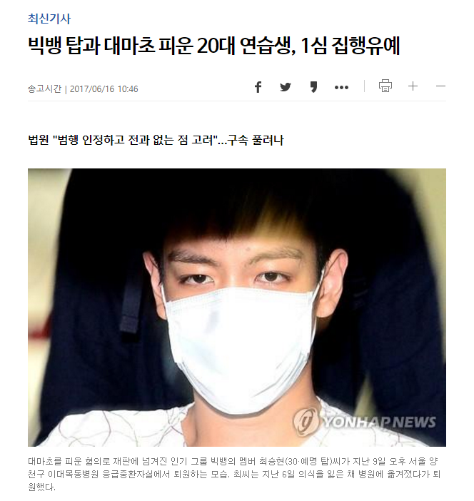 연습생은 걸린적은 있지만 탑이라는 큰건을 불었으니 정상참작한게 아닐까요ㅎㅎ |