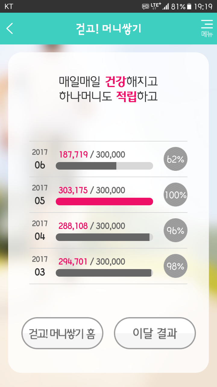 한달에 30만 걸음 걸으면 500원 줍니다..